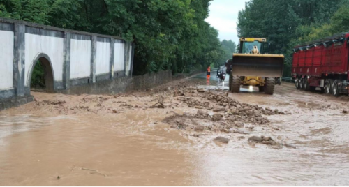 7月27日15时左右,千阳境内强降雨,致千阳公路管理段管养的国道344线多处泥石流涌上路面。