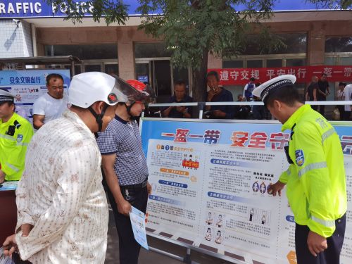 7月6日,府谷公安交警新民中队利用赶集日以“遵守交规 平安出行 一盔一带 守护生命”为主题开展交通安全宣传活动。