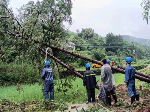 7月3日,汉阴县普降暴雨,致使城乡多处出现树木倾倒,造成辖区11条10千伏线路遭受不同程度的破坏,国网汉阴县供电公司第一时间启动应急响应,组织供电所紧急出动、紧张有序地开展抢修复电工作。