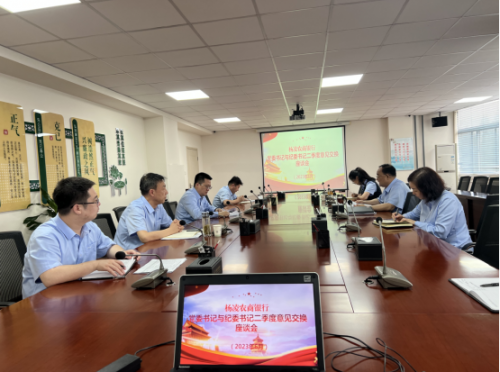 6月19日下午,杨凌农商银行党委书记闫昆听取行班子成员履行“一岗双责”工作汇报,并就全行党风廉政建设工作与纪委书记李新功进行了意见交换。