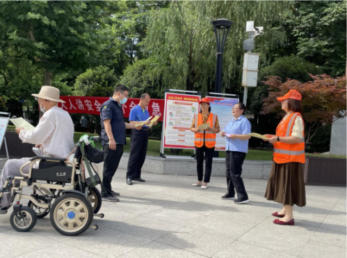 6月15日,汉阴县城南凤凰古城人头攒动,身着红色志愿马甲服的县水利局干部发放宣传海报、宣传单,向群众宣传“什么是安全生产”“安全生产工作的原则方针”“关于安全生产六大要点”“安全生产15条硬措施”“安全生产十禁十查”“安全生产五个全覆盖”“消防安全知识”“农村饮水安全评价标准”“远离非法集资”等知识。