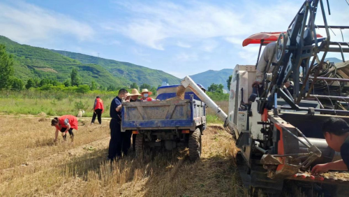近日,凤县凤州镇龙口村近30亩小麦开机收割,凤县农技中心、农机中心、农业行政综合执法大队的几十名党员干部第一时间赶到麦田,帮助群众抢收、晾晒小麦。