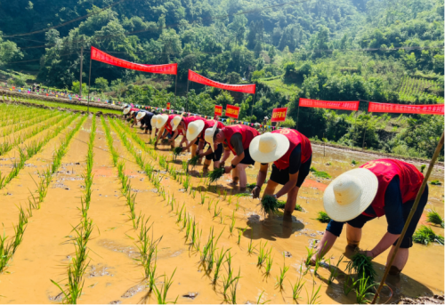 汉滨区紫荆镇:秧苗绿映志愿红 助农插秧促振兴