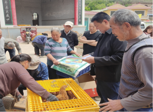 初夏时节,佳县大佛寺便民服务中心楼底村委会门前热闹非凡,榆林市引黄局驻村工作队正在给村民发放土鸡苗,村民们个个喜笑颜开。