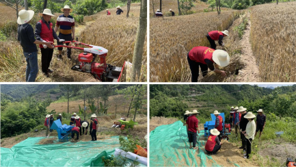 5月30日,出现难得的晴好天气,汉滨区紫荆镇红花村的驻村工作队协调了三台半机械化农机,组织开展“紫荆百亩小麦示范点”的小麦抢收作业。