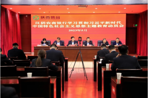 5月9日,汉阴农商银行召开学习贯彻习近平新时代中国特色社会主义思想主题教育动员会,会议以“现场+视频”形式进行,该行领导班子、各部门负责人,机关、营业部、城南支行、月河支行支部委员会成员在总行六楼大会议室参加会议,其他支部委员会成员在各自视频会议室参会,会议由该行党委副书记主持。