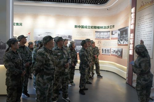 5月7日,靖边县委宣传部党员干部走进榆阳区补浪河女子民兵治沙连基地参观学习。
