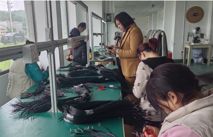 近日,在汉阴县蒲溪镇三奥捷电子科技有限公司的生产车间里,几十名员工正在有条不紊地生产电子电器设备连接线。入眼是工人们忙碌的身影,入耳是轰隆隆的机器声,一派繁忙景象。