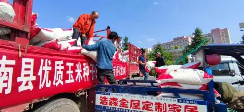 4月27日,两辆满载着优质玉米种子和专业复合肥的大卡车,从咸阳市秦都区抵达商洛市商南县境内,为商南县农业生产暨大豆玉米带状复合种植提供支持。