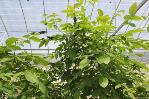 五月的董坊村蝴蝶养殖大棚内,成群的蝶儿时聚时散,绚丽多彩的翅膀在阳光映照下仿佛极美的绸缎,玲珑素雅的碧凤蝶,成双成对的在花间轻盈地飞逐,尾翼长如丝带,临风飘动,舞姿真是优美潇洒极了。