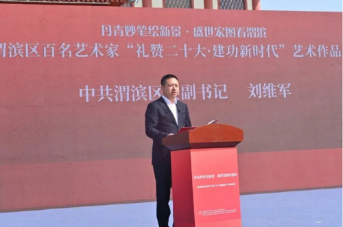 4月8日上午,由渭滨区委、渭滨区人民政府、宝鸡市文物局共同主办,渭滨区委宣传部、渭滨区文学艺术界联合会等单位联合承办的“丹青妙笔绘新景·盛世宏图看渭滨——渭滨区百名艺术家‘礼赞二十大·建功新时代’艺术作品展”在石鼓阁正式开展。宝鸡市文化艺术界联合会党组书记、主席王玉虹参加活动并讲话,渭滨区委副书记刘维军致欢迎词。