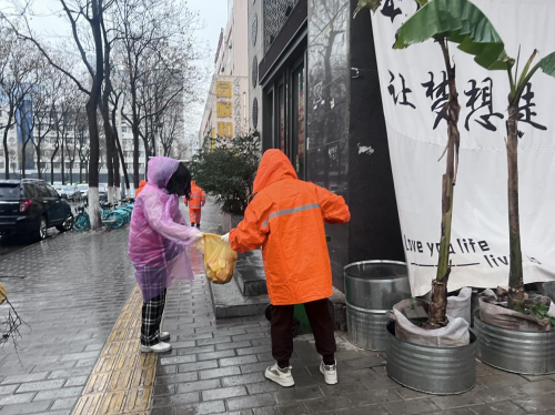 3月16日清晨7点,天色朦胧微亮,雨水在地面上拍打出一圈圈音符,伴随淅淅沥沥的雨声的是“唰唰唰”的扫地声,一首悦耳的合奏曲唤醒这座城市。