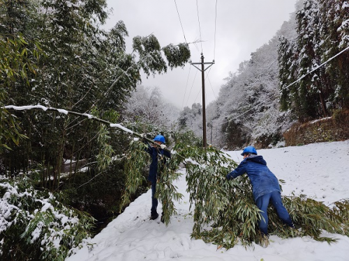 3月16日,位于陕鄂边界的白河县城气温骤降,突降大雪。部分线路因大雪压断树木,导致跳闸,国网白河县供电公司工作人员第一时间响应,踏雪抢修,迅速恢复了供电。