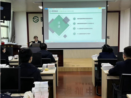 2月25日,武功农信组织新入职员工开展消费者权益保护知识及投诉处理技巧岗前培训。