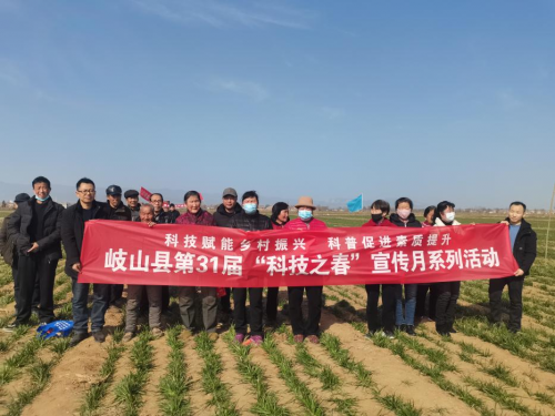 2月24日,岐山县科协与青化镇政府在青化镇南武村联合举办“科技赋能乡村振兴、科普促进素质提升,岐山县第31届‘科技之春’宣传月系列活动” 春季小麦田间管理技术培训现场会。