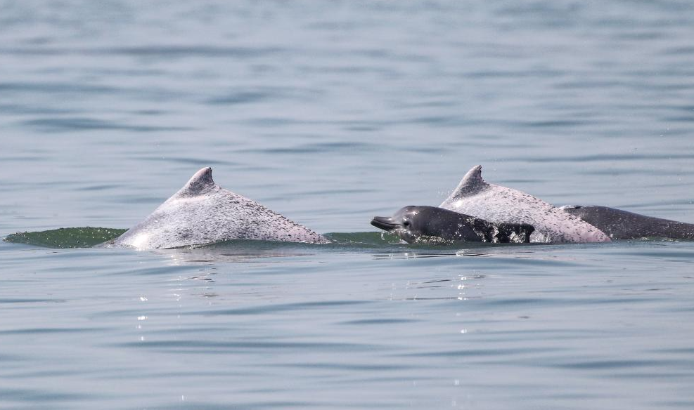 科研人员在海南岛西南海域目击到大量中华白海豚