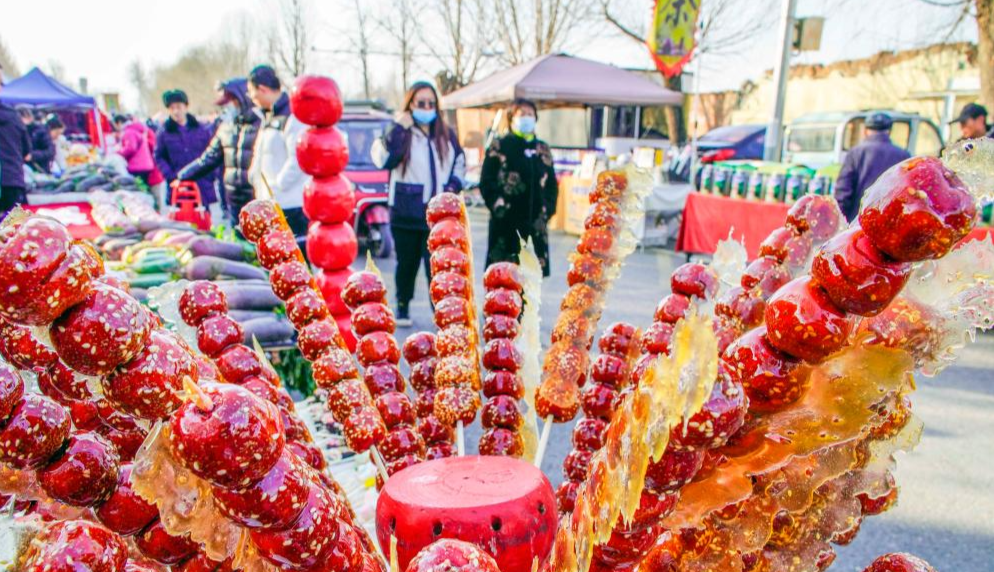 2月12日,人们在北京市平谷区南独乐河镇大集购买年货。