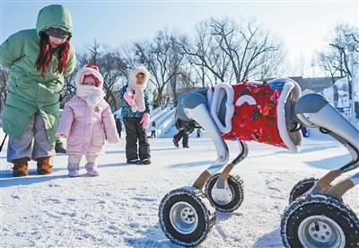 黑龙江省哈尔滨市正值冰雪季,被冰雪覆盖的松花江哈尔滨段江面化身游乐场,吸引市民游客体验冰雪娱乐运动。