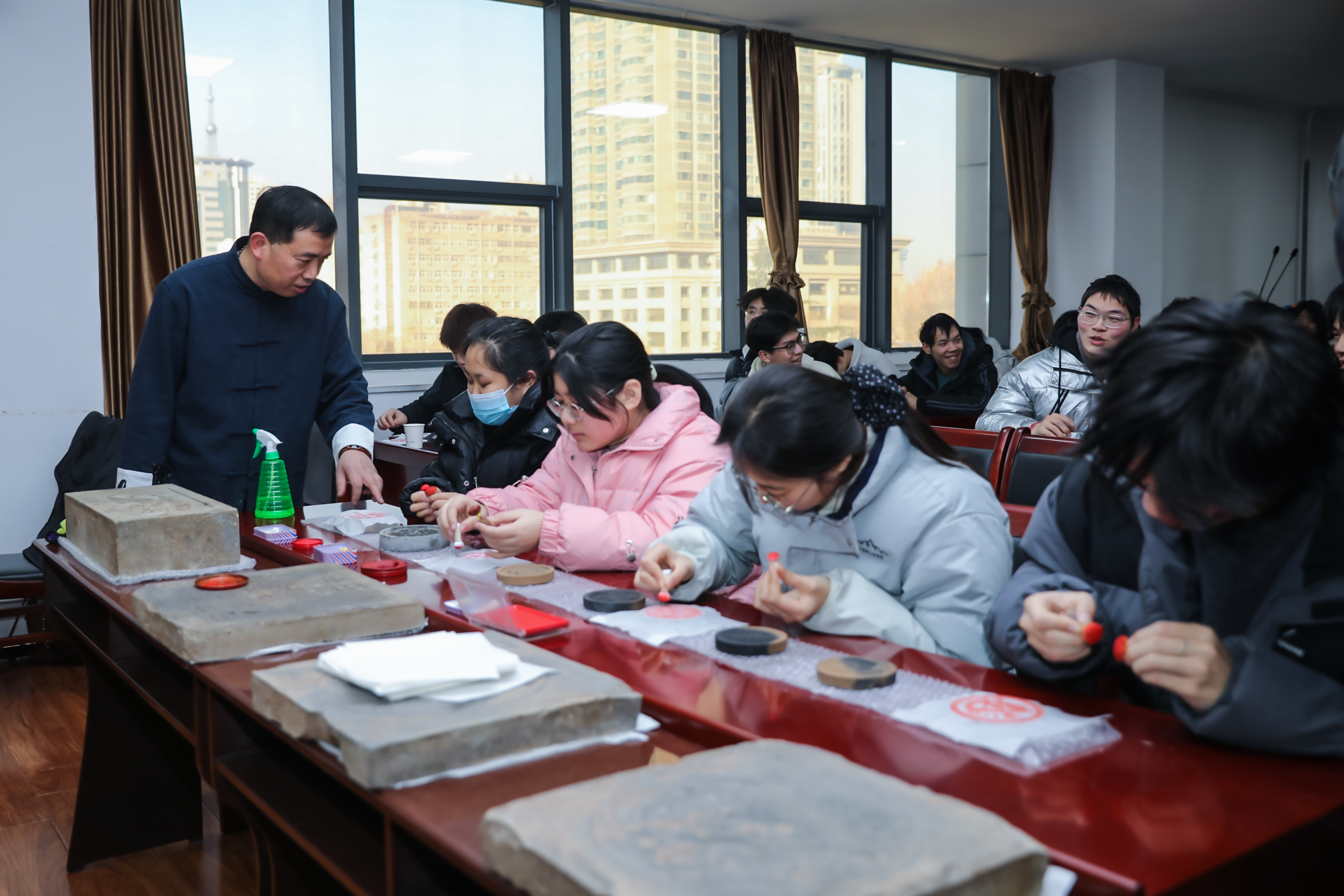 一张宣纸,一方石板,一团墨包,伴随着“噗噗”的轻击声,尘封千年的纹样便跃然纸上。1月6日,在咸阳中铁工程职业技术学校,一场名为“指尖传古韵 拓印承非遗”的文化体验活动火热开展,师生们零距离感受非物质文化遗产的独特魅力,亲手体验古老的拓印技艺,为校园文化建设注入了深厚的传统底蕴。