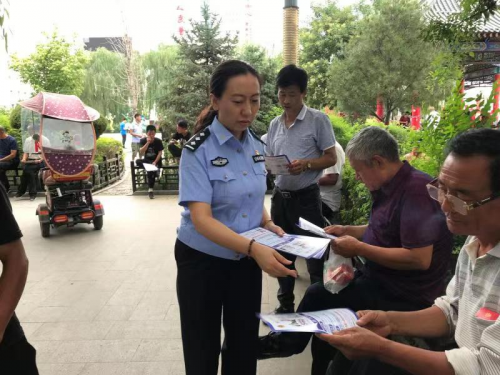 7月20日,子长市公安局出入境管理大队民警走上街头在人员密集场所开展打击妨害国(边)境管理犯罪的主题宣传活动,向群众普及相关法律知识。