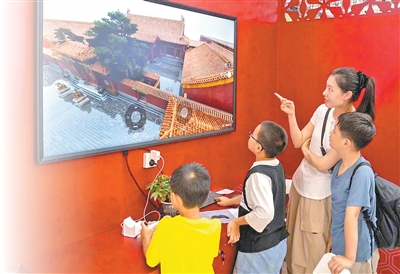 “数字故宫快闪展”上,观众在沉浸式体验。
