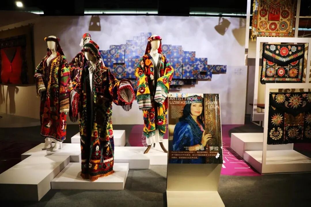 展区设计融合“民族元素+现代装置”理念,设有主题艺术装置区、沉浸式声光投影区、非遗手工对比专区等,共同勾勒出一幅幅绚烂多彩的丝路文明画卷。在参观过程中,观众不仅能领略各国民族美学的独特魅力,还可通过实物对比与图文注解,直观感受文化差异中的共鸣与融合。