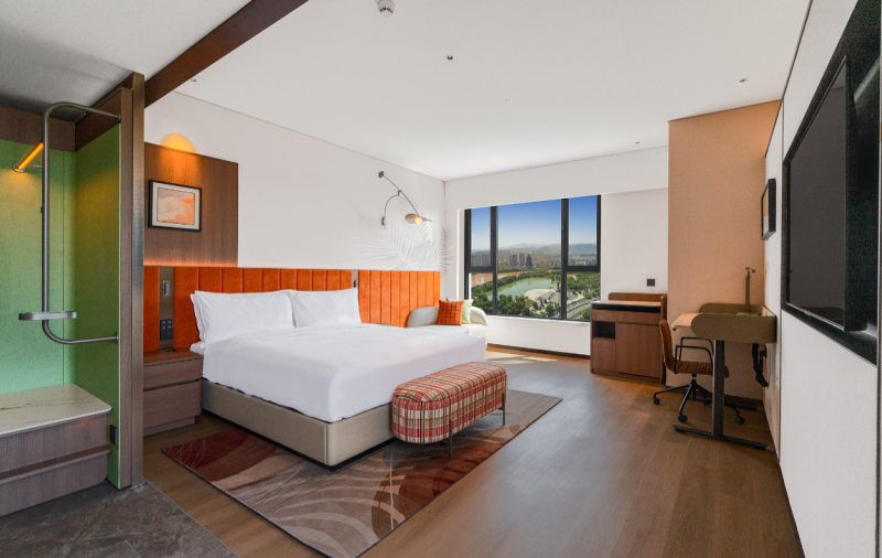 酒店拥有140间现代舒适客房,均位于29层及以上高空,包括家庭房及连通客房满足不同宾客的出行需求。透过客房的大面积落地窗,宾客可以尽享奔腾不息的黄河胜景或壮丽的城市景观。步入客房,全自动灯光系统及智能温控系统引导宾客进入放松与休憩的私人空间。客房配备65寸液晶电视、无线上网服务、可升降办公桌及人体工学椅、舒达床垫、无线充电设备及Peter Thomas®彼得罗夫洗浴备品等,为宾客提供高端亦适居的住宿环境。为满足宾客多样化的旅行需求,配有沙发床的家庭房及特别设置的连通客房让宾客在旅行中进一步获得更多的自由度与灵活性。