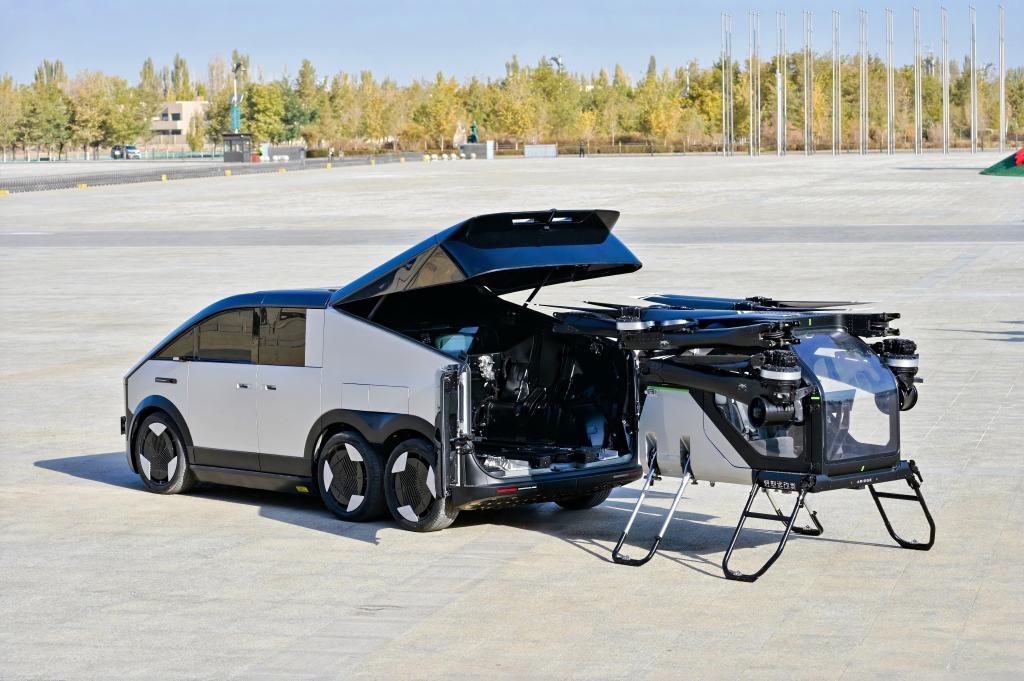 “陆地航母”分体式飞行汽车在敦煌进行自动分离演示。新华社发