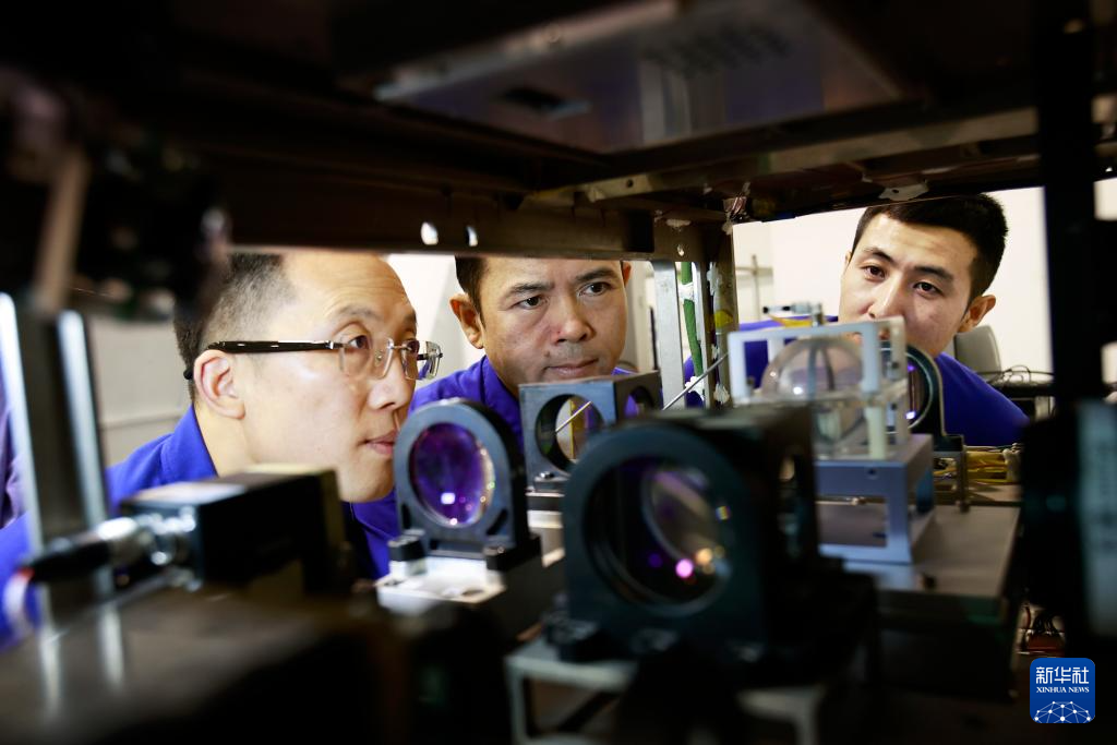 张洪章(左)、张陆(中)、武飞在检修设备(2025年8月21日摄)。新华社发(徐部 摄)