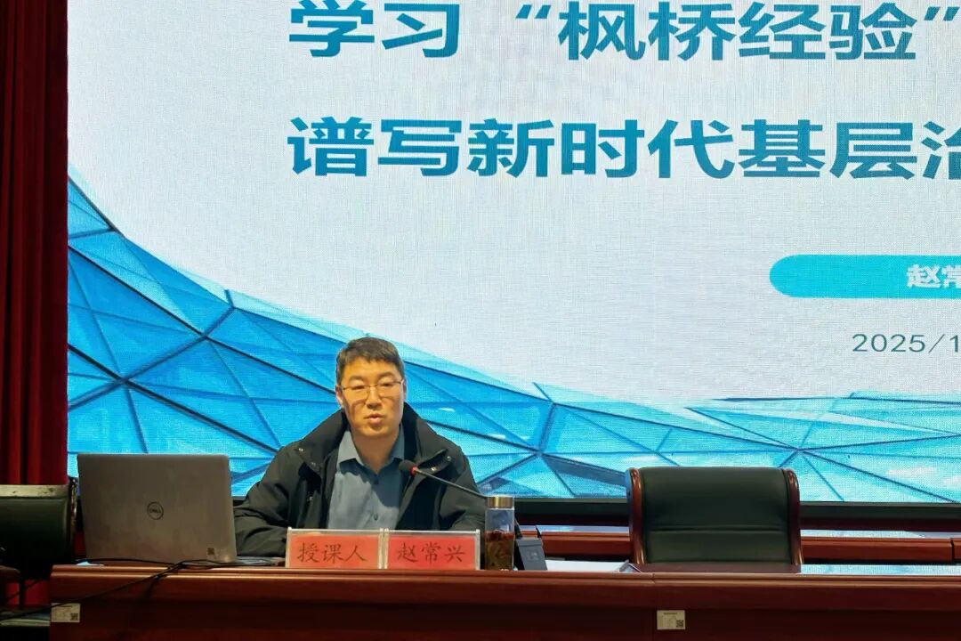 西安电子科技大学赵常兴教授以《学习“枫桥经验”与“千万工程”,谱写新时代基层治理现代化新篇章》为主题,带来前沿理论分享。他深入解读“枫桥经验”“小事不出村、矛盾不上交”的治理精髓,结合“千万工程”推动乡村蝶变的实践案例,从资源整合、群众动员、长效机制建设等维度,为学员讲解如何将先进经验转化为荆姚镇基层治理的具体举措,助力破解乡村发展中的实际难题。