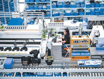 湖南省永州市冷水滩区一家玩具制造企业,工人在自动化生产线上作业。