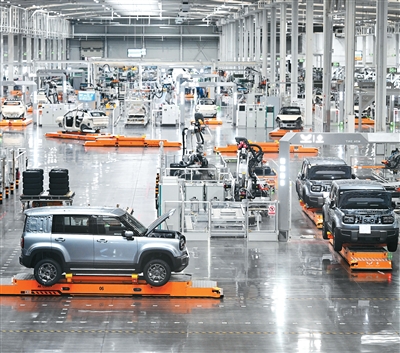 在广西壮族自治区柳州汽车城,上汽通用五菱“岛式”精益智造工厂里忙碌的自动化生产线,这是国内首创突破传统流水线模式的岛式智造工厂。