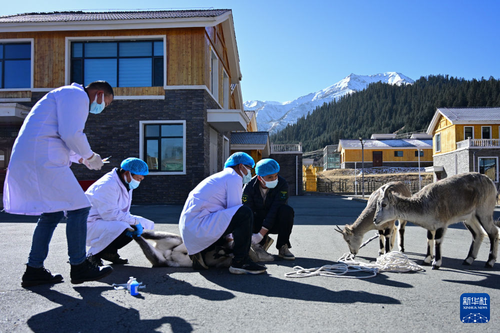 11月10日,在救护繁育站,工作人员为岩羊打疫苗。