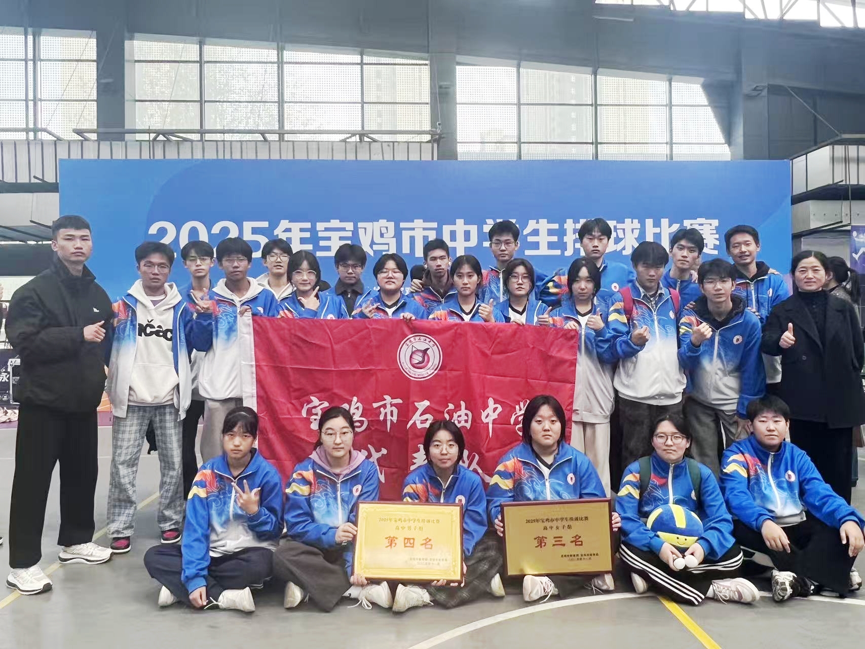 2025年宝鸡市中学生排球比赛于11月7日至9日在宝鸡市会展中心圆满落幕。宝鸡市石油中学排球队在比赛中团结一心、奋勇拼搏,历经三日激烈角逐,最终荣获女队团体季军、男队团体第四名的优异成绩,充分展现了石油学子昂扬向上的精神风貌和卓越的竞技水平。