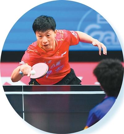 11月18日,在澳门举行的第十五届全国运动会乒乓球男子团体半决赛中,北京队组合马龙/黄友政3比0战胜广东队组合周启豪/林高远。图为马龙在比赛中回球。