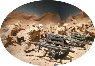 “没有桥腿,我们当桥腿。”在“十人桥”互动展区,视频中展现了战士跳入河中组成“人桥”的情景。华东野战军第9纵队27师79团在追击敌军途中,被十几米宽的河流挡住去路。为了快速渡河,副排长范学福等带领战士们跳入冰凉的河水中,用身体做桥墩,架起一座人桥。他们架设人桥长达75分钟,让500余名战士过桥。