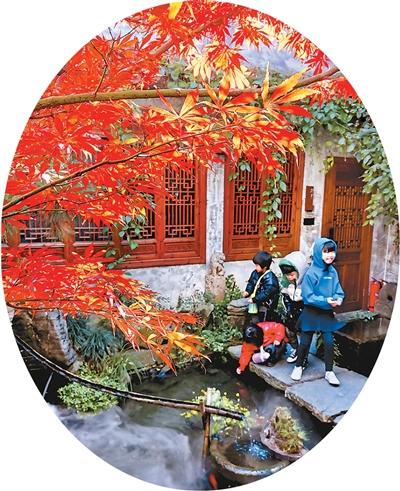 孩子们在安徽省黟县淡园民宿嬉戏。