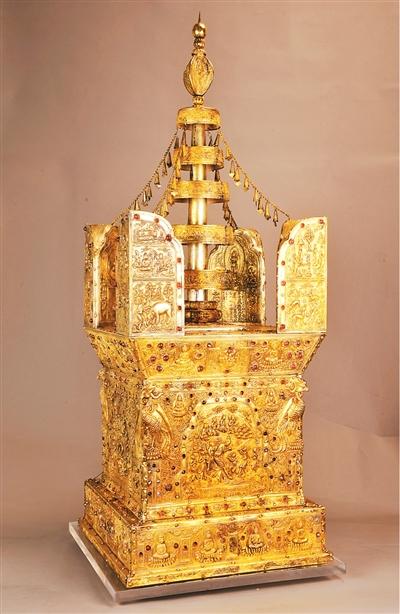 北宋鎏金七宝阿育王塔。