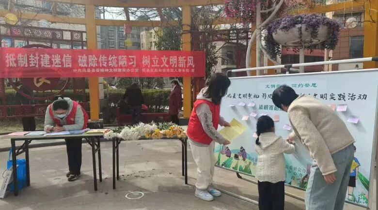 针对丧葬陋习,凤县在清明、寒衣节等节点推出“鲜花换纸钱”“网络祭祀”等活动,发放《文明祭祀倡议书》两千余份;文化阵地上,开展“村里的新鲜事”村规民约故事汇演讲活动,创作《过寿》等一批移风易俗文艺节目巡演乡间,用秦腔、快板唱响文明新声;“身边好人”“好媳妇好婆婆”评选常态化,让村民学有榜样。