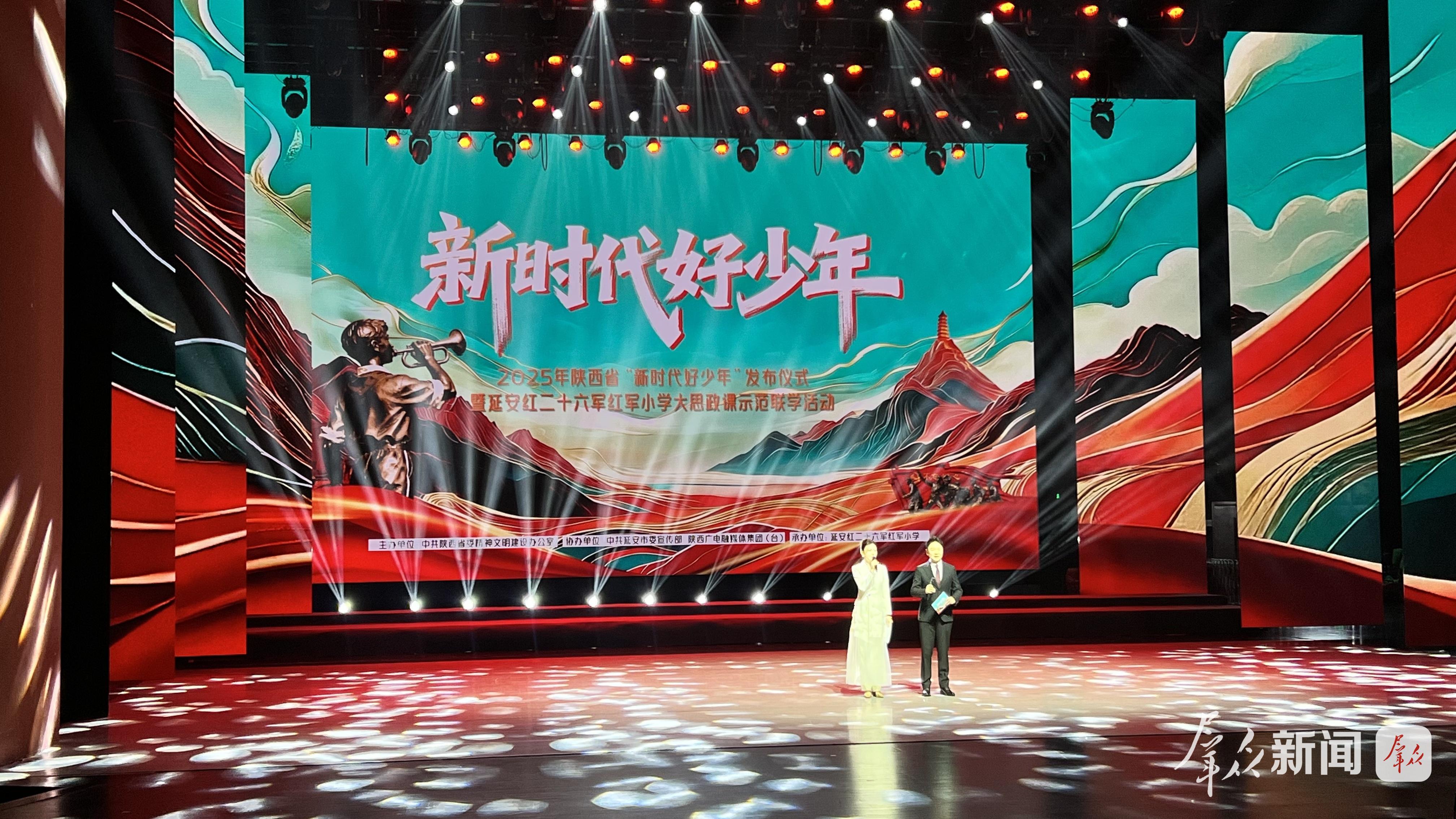 12月25日下午,2025年陕西省“新时代好少年”发布仪式暨延安红二十六军红军小学大思政课示范联学活动在延安市延安大剧院举行。本次活动由中共陕西省委精神文明建设办公室主办,中共延安市委宣传部、陕西广电融媒体集团(台)协办,延安红二十六军红军小学承办。