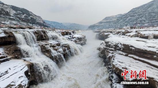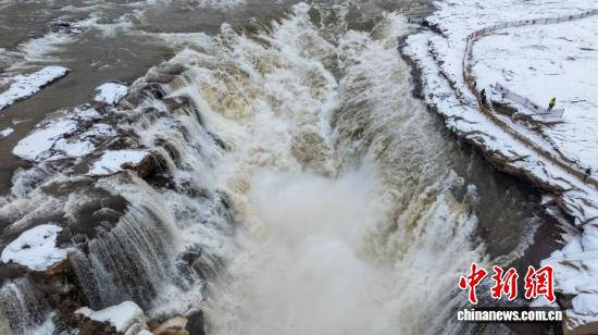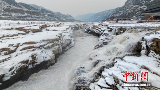 元旦假期,位于秦晋大峡谷的陕西黄河壶口瀑布,以一幅银装素裹的冬日美景,迎接新一年的到来。雪幕笼罩下,奔腾的黄河水愈发湍急汹涌,滚滚浪涛呼啸着坠入十里龙槽,激起漫空水雾,瀑布两岸形成了长短不一的冰挂,皑皑积雪与晶莹冰挂交相辉映,将冬日壶口的雄浑壮阔勾勒得淋漓尽致,尽显北国风光的豪迈与苍茫。图为黄河壶口瀑布雪景。