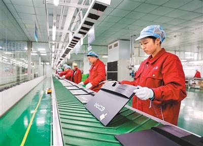 1月5日,江西省瑞昌经开区智造小镇一科技公司车间内,工人正在生产线上组装智能终端产品。