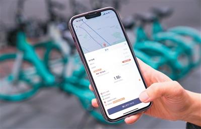 市民在北京乘坐滴滴青桔单车后,使用数字人民币支付车费。