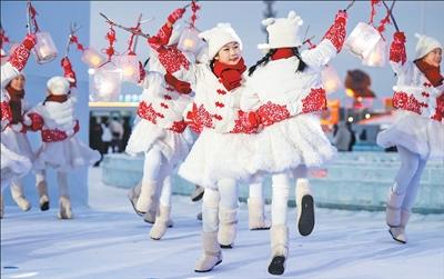 图为演职人员在“世界市长对话·哈尔滨”活动开幕式上表演。