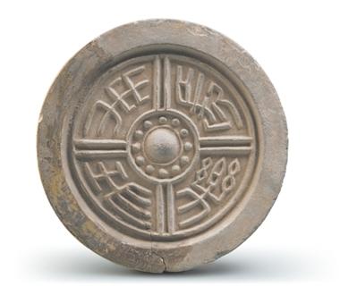 1997年出土于陕西省咸阳市汉阳陵帝陵南阙门。为宫廷建筑构件,泥质灰陶,圆形,宽边,外区用双界格线分为四区,每区各有一字,阳文篆书“长乐未央”,兼具文字装饰美感与吉祥寓意。