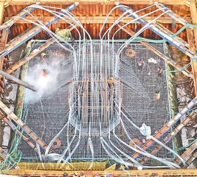 1月14日,施工人员正在进行最后一根桩基的施工收尾工作。