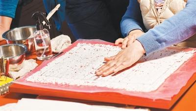 故宫博物院古籍保护科技实验室的修复师正在溜书口。