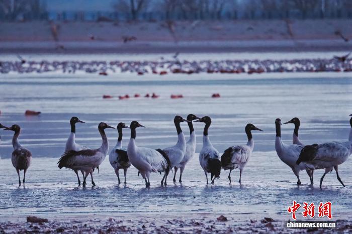 图为1月17日,林周县越冬的黑颈鹤。拉萨市文化和旅游局供图