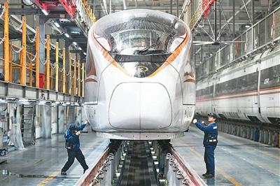 为积极应对寒潮天气,确保动车组安全“过冬”,在南京动车段南京南动车运用所检修库,地勤机械师对车体外表进行检查。