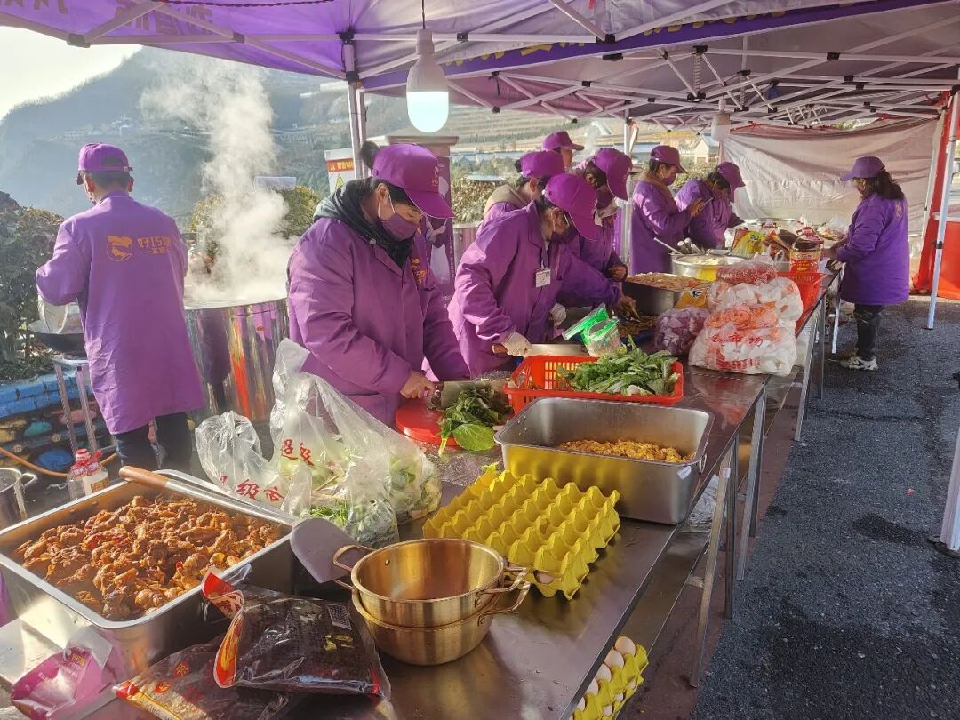 为确保活动有序开展,公安、交警、市监、应急、消防、电力、卫生各部门协同值守。近百名志愿者在人流密集区域和各个路口悉心引导游客车辆出入和停放,维护现场秩序,提供安全保障。热气腾腾的刨猪汤驱散了冬日寒意,志愿者们的贴心服务也温暖了人心。这场年猪宴,既有乡土民俗的独特魅力,更有志愿者们的温情守护。